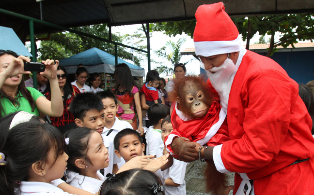 Έτσι, ο εικονιζόμενος Άγιος Βασίλης με το βοηθό του που δεν είναι ούτε ξωτικό ούτε τάρανδος αλλά... μαϊμού τάισε τους κροκόδειλους σε φάρμα στη Μανίλα. Η διαδικασία είχε βέβαια και τα απρόοπτά της καθώς υπήρξε κροκόδειλος που ήθελε μάλλον ένα αναμνηστικό από τον Άγιο και του δάγκωσε το παντελόνι.